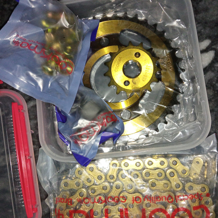 ست دنده زنجیر هندا cookma125کوکما 428/100H همراه بوش توپی خارتوپی پیچ طبق خاردنده جلو